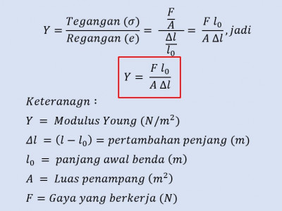 . Materi tegangan dan regangan dapat kamu pelajari lebih lengkap pada artikel Perbedaan Tegangan dan Regangan ya. Modulus Elastisitas Young Menurut Robert Hooke perbandingan antara tegangan dengan regangan suatu benda disebut dengan modulus elastisitas young benda tersebut. Secara matematis modulus elastisitas dapat dirumuskan.